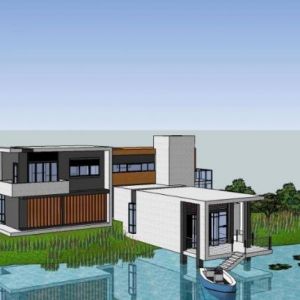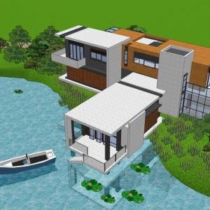 独栋山地临湖别墅,现代风格