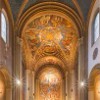 慕尼黑圣路易堂是德国慕尼黑市的一座宏伟的天主教堂,以其新罗曼式风格和世界第二大的祭坛壁画而著名。该教堂位于慕尼黑的路德维希大街,是慕尼黑市中心的重要地标之一。圣路易堂始建于1829年,由巴伐利亚国王路德维希一世(Ludwig I)赞助并以其名字命名。教堂内部收藏了多幅大型壁画,其中最著名的是位于正中的《最后的审判》壁画,这幅壁画被认为是世界上第二大的教堂祭坛画,其野心勃勃地想要超越梵蒂冈博物馆西斯廷礼拜堂中米开朗基罗的同名遗作。