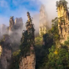 张家界武陵源位于湖南省张家界市武陵源区,是世界自然遗产和世界地质公园。武陵源以其独特的砂岩峰林地貌和壮丽的自然风光而著名,被誉为“人间仙境”。这里有金鞭岩、南天一柱、黄石寨等著名景点,吸引着大量游客前来观光和旅游。